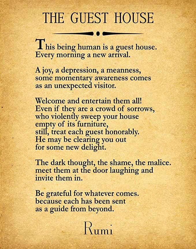 I tend to look for the greater or deeper meaning in how things unfold and this is no different. I’ve included one of my favorite poems by Rumi. It’s a philosophy that is both hard and true. I feel like my house has been swept clear, in a wave not of my doing. At the same time, I feel gratitude for all that has happened and all that will happen, even amidst the tears and grieving associated with loss.