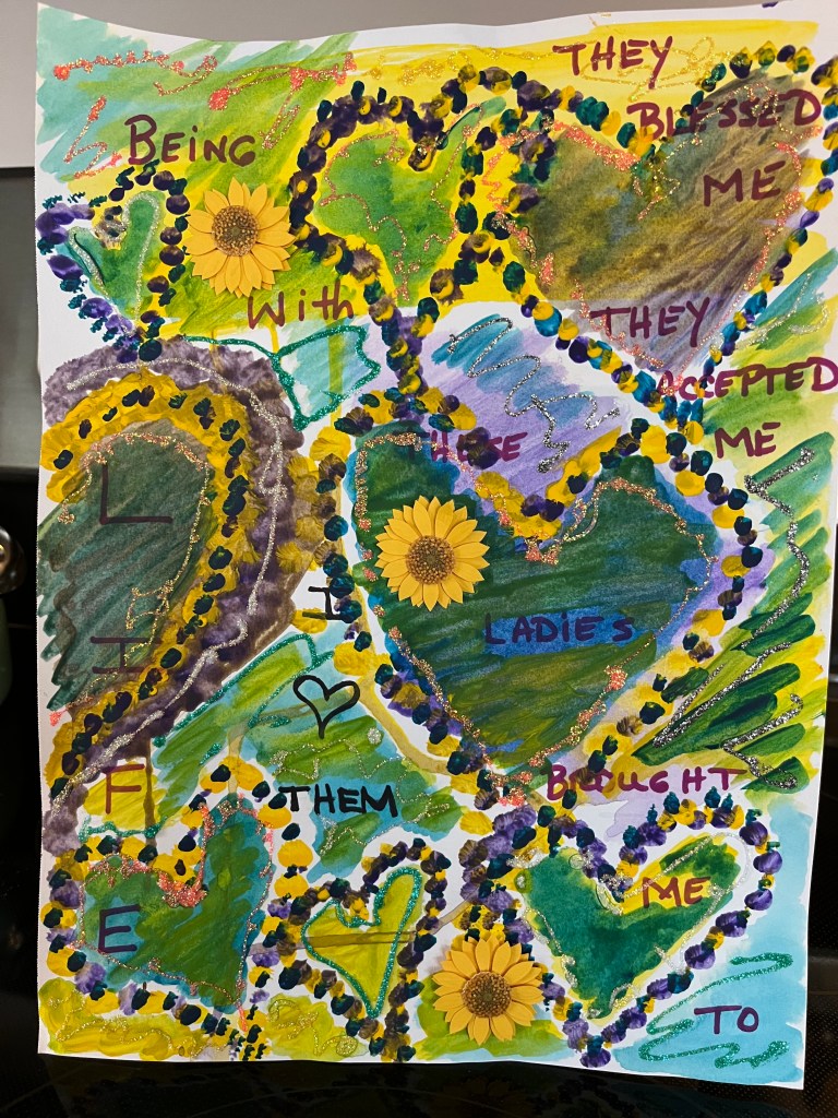 Apart from eating, talking, laughing and catching up, we did a creative activity that involved identifying and exploring a positive memory. For me, the memory that arose was of meeting these women and how they welcomed me into the group. These women came into my life when I most needed revitalization and, without exaggerating, brought my spirit back to life. And I told them so yesterday….