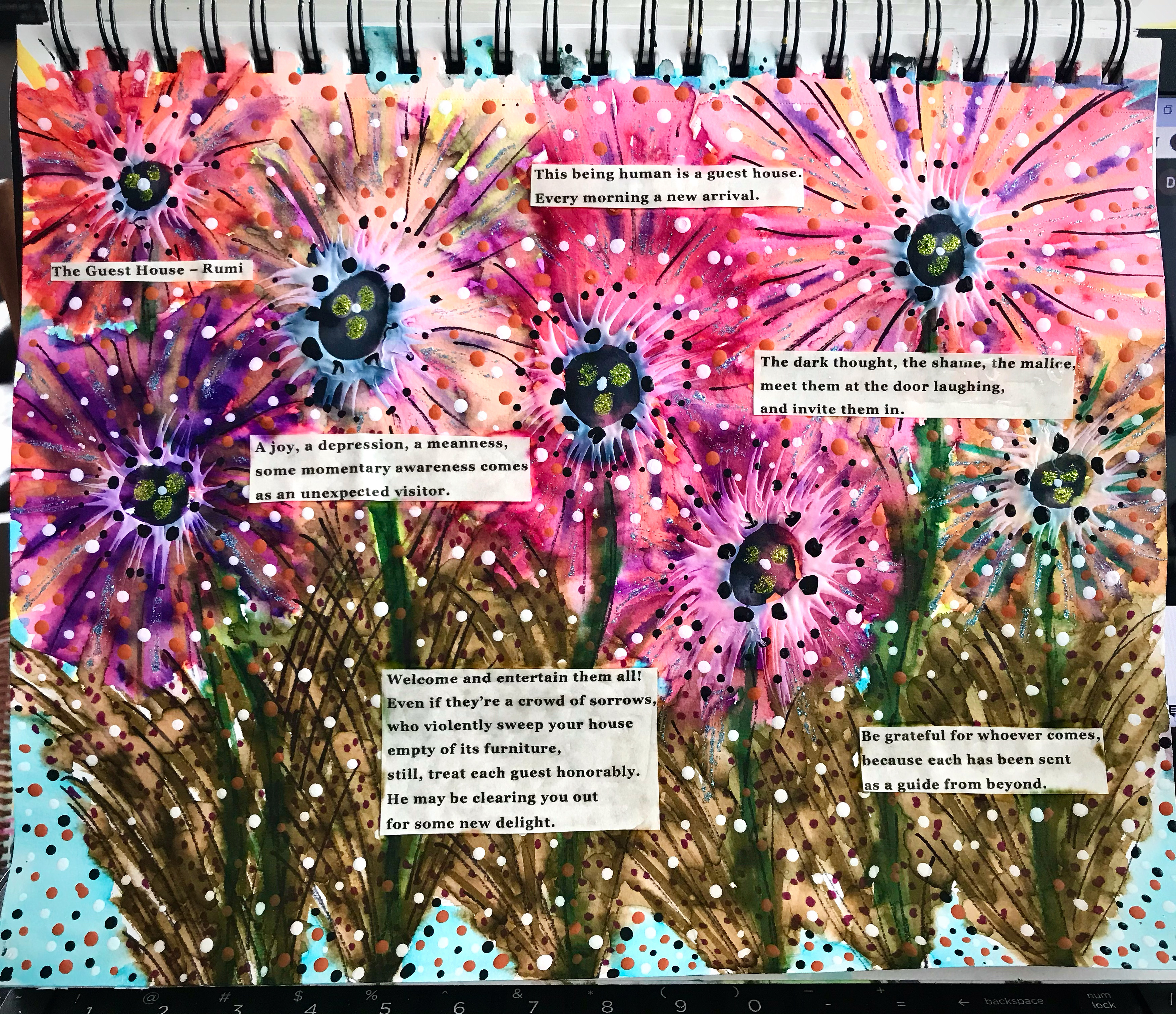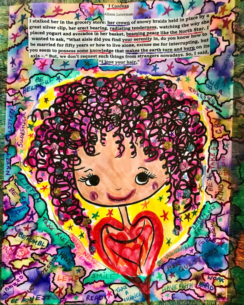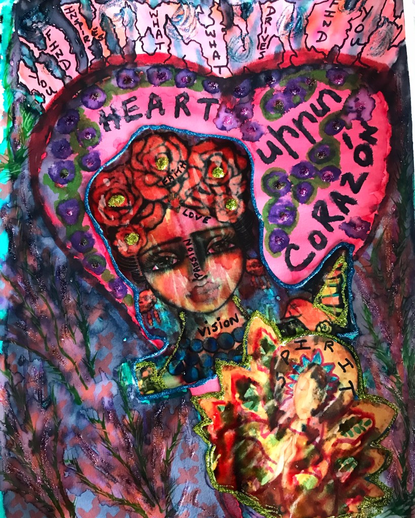 Artistic expression has been a wonderful means to tap into thoughts and feelings that I can’t put into words at times. I have found that when I can let go of the notion that “I’m not an artist” or “what if I make a mistake” I can create something meaningful and authentic. I can get lost in my art when I release the need to “produce” something and let what’s meant to emerge come forth.